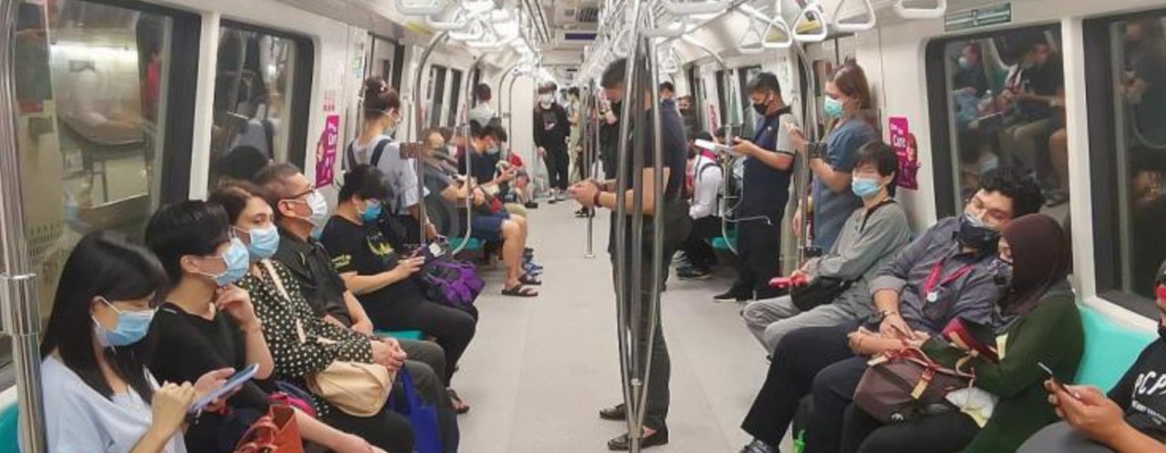 Although everyone is wearing masks on the train in this photo from The NewPaper, the fear of contracting the virus still lingers. Most commuters are behaving responsibly in public places, trying their best to keep at least a 1-meter (3-foot) distance while standing and leaving an empty seat in between each other while sitting. In order to not incur the glares of others, nobody talks loudly on the train. In a nutshell, it is pretty safe to commute on public transport.