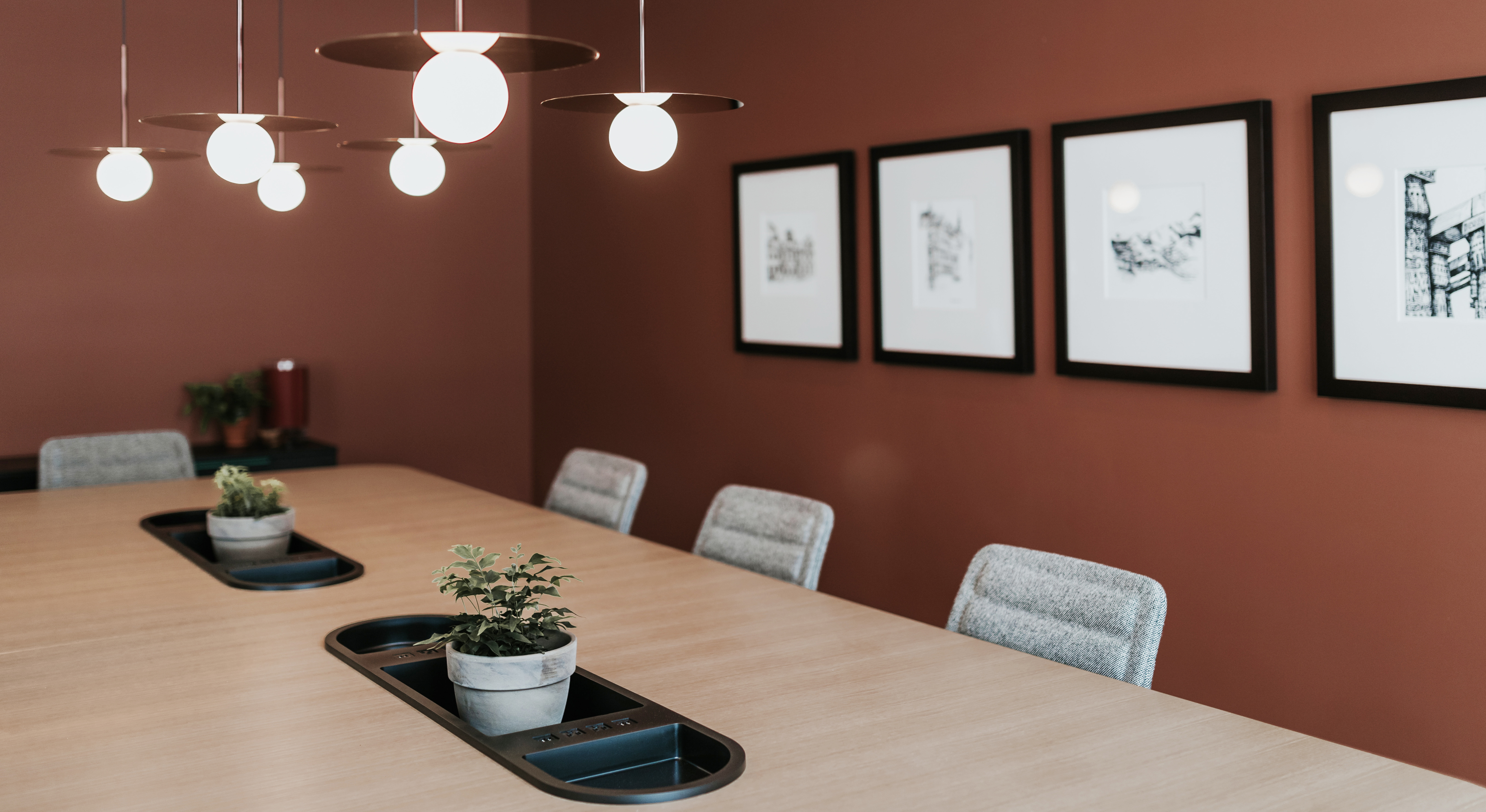 The three-story conference center’s 48 guest rooms have been completely renovated with custom millwork by Cassina Contract and Haworth materials and finishes. The lounge spaces feature the best Haworth has to offer, including global products from Cassina, Cappellini, Poltrona Frau, and JANUS et Cie. Haworth’s global partner brands are also featured, with lighting by Pablo Designs, rugs by GAN, and textiles by Kvadrat.