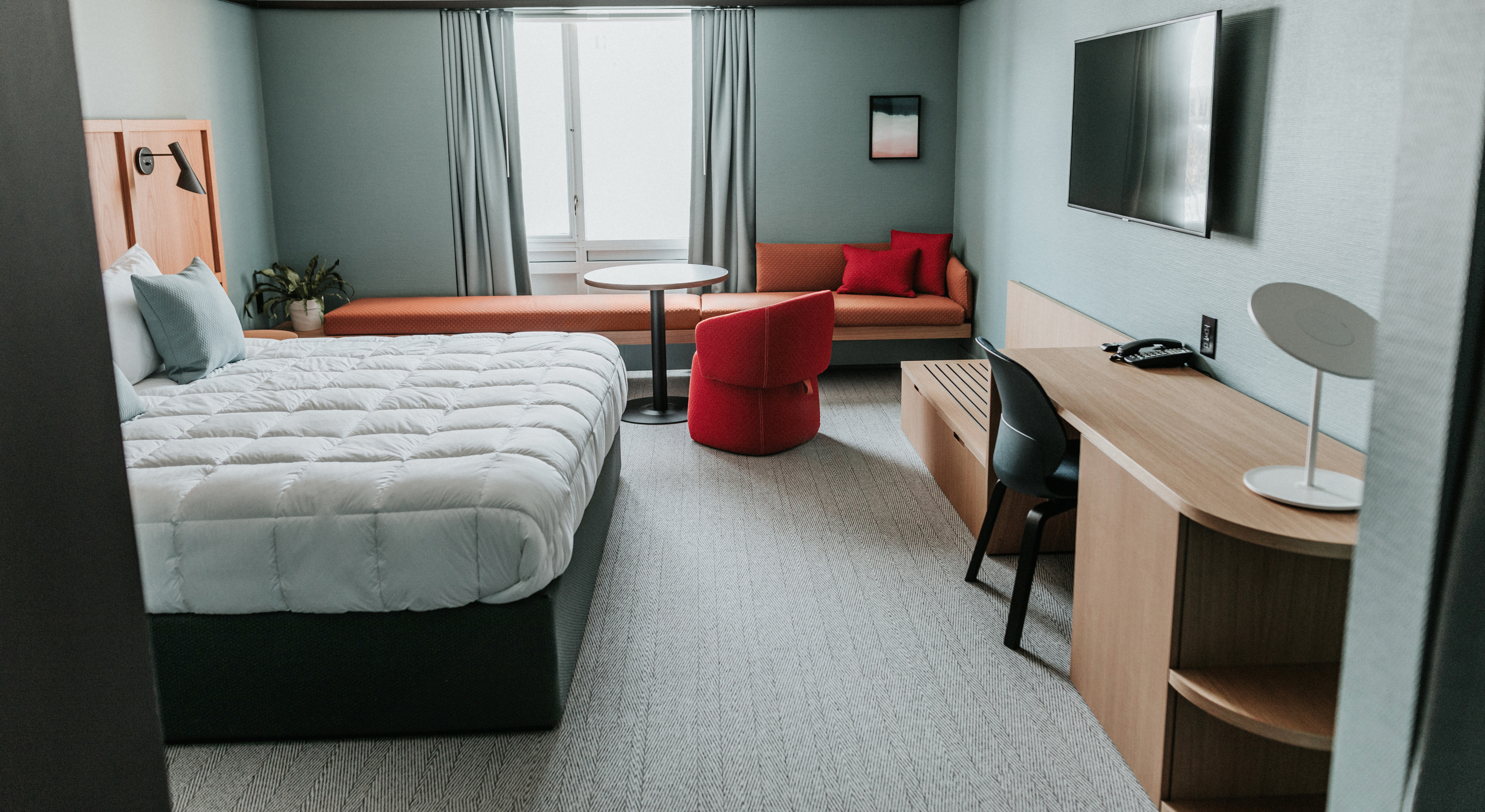 Our global headquarters in Holland, Michigan, draws people from around the world—visitors in search of inspiration and workplace solutions. Now their experience will become more immersive when they stay in a place with the same aesthetics they’re seeking.