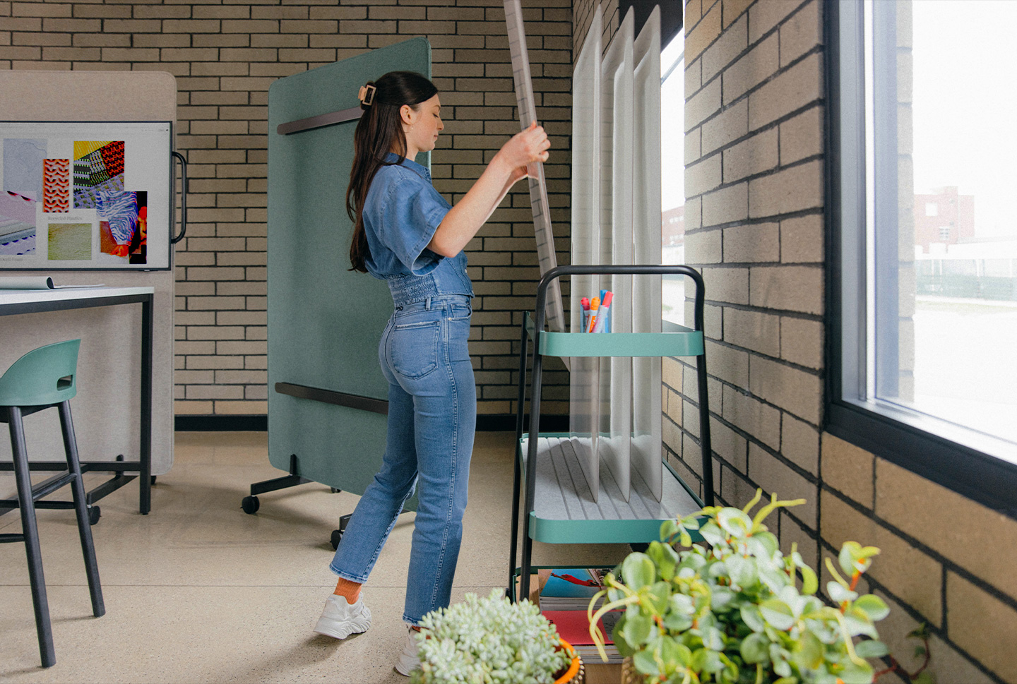 The Board Cart stores up to seven additional Haworth Collaborate Tablet Markerboards. The cart’s rail kit stores each board upright and keeps them from touching, so your ideas won’t be smudged.