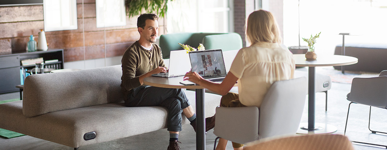 多くのサードプレイスが、仕事に特化して人々を支援するよう進化してきました。従業員は、どこで仕事をするにしても快適に過ごしたいと考えており、サードプレイスを提供する企業は、インターネット接続、プライバシー、移動可能な家具、ホワイトボードなどで、これらの配慮をしています。また、多くの場合コラボレーション技術を用いて、チームが小さなミーティングスペースでプライベートなコラボレーションを行えるスペースも提供しています。