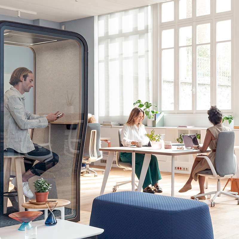 現代のワークプレイスは、コラボレーションとコミュニケーションの場として大きな役割を果たしていますが、その一方で、集中力を要する作業にも適した空間を提供しなければなりません。近年のハイブリッドワークモデルの導入により、多くの人々が集中するためにオフィス以外の場に作業スペースを求めるようになりました。しかし時には、コラボレーション作業と同時に集中力を要する作業を同時にこなさなければならない場合もあります。コラボレーションと作業集中を両立できるワークプレイスはどのように実現できるのでしょうか。