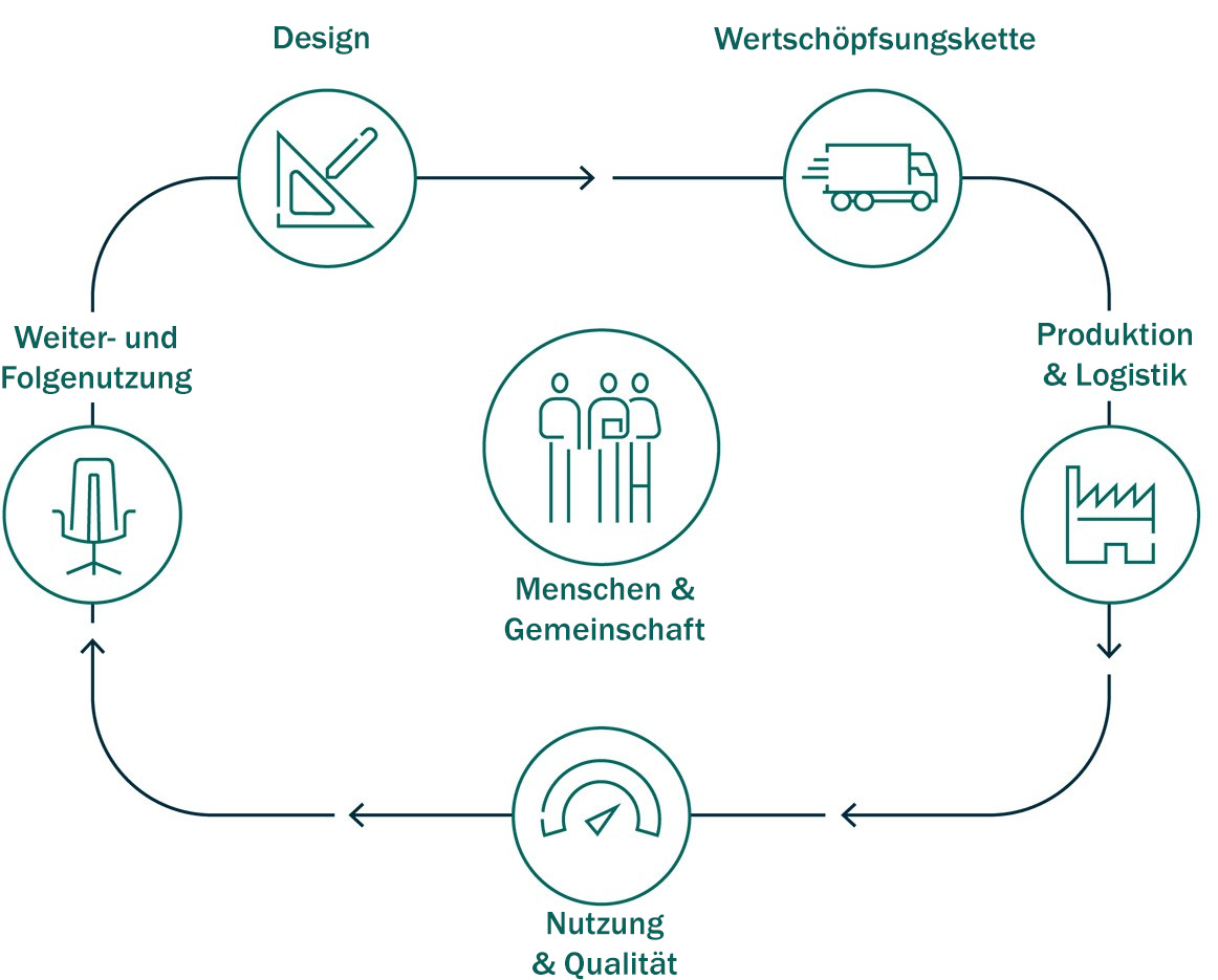 Nachhaltigkeit ist ein unternehmensweites Ziel, das von unserer Geschäftsstrategie geprägt und auch dort verankert ist. Die Verantwortung für die Governance liegt bei Haworth bei der Geschäftsleitung und dem Führungsteam.
