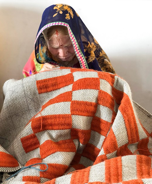 “We came up with the idea to make a line of embroidered rugs to take advantage of a skillset that almost all women in the region have,” said Mapi. “We were excited about the design possibilities, because you can do anything with an embroidery needle if you have the skill. Embroidery work is also portable, so the women can take it home and work on it there if needed. They are often caring for children or older relatives, so they can continue doing their paying job at home.”