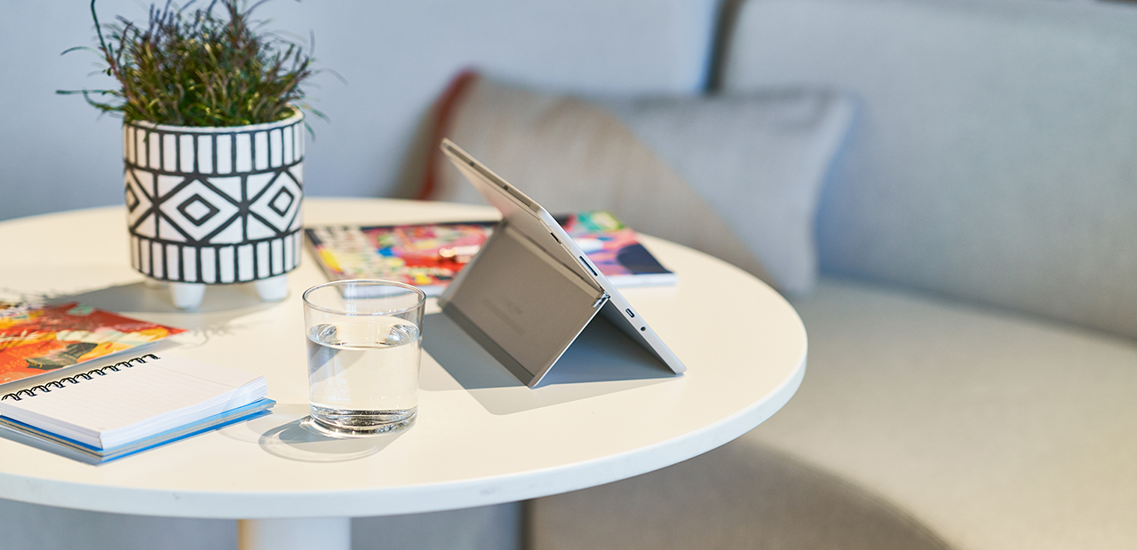 Also prop up your laptop so the camera is at eye level. This way the view for your collaborators isn’t of you looking down at your screen, but rather more closely simulates how they would see you in a real conversation.