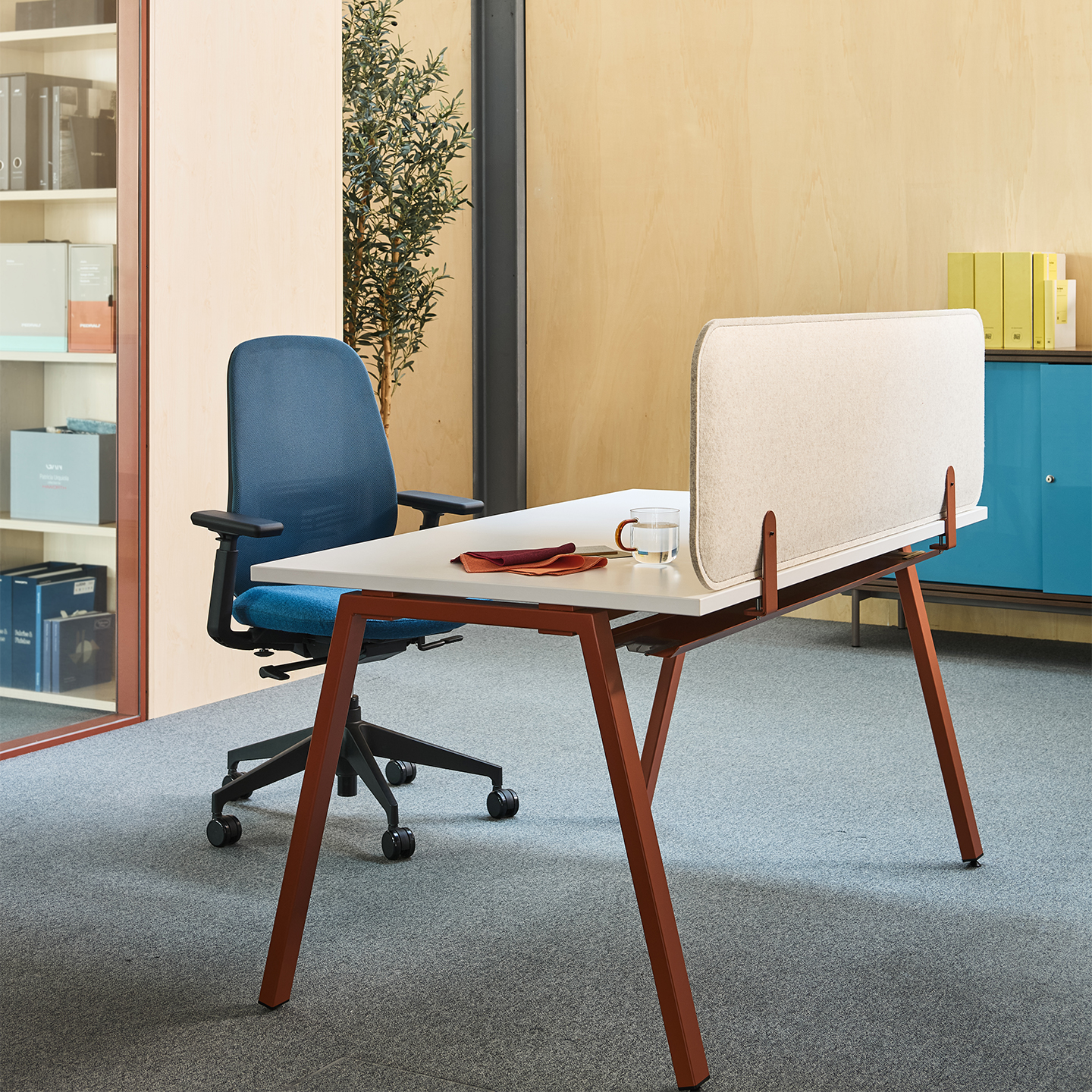 Drift Felt est adaptable. Il est compatible avec l'ensemble des bureaux Haworth, vous permettant ainsi d'harmoniser vos designs et vos solutions de confidentialité à travers tout l'espace de travail. Son système de fixation universel facilite l'installation.