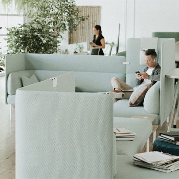 Les écrans Haworth Collaborate sont disponibles en version tissu ou tableau effaçable. Les deux options sont équipées de roulettes pivotantes multidirectionnelles, ce qui facilite leur déplacement et leur réorganisation. Vous pouvez même les configurer en angle droit pour créer un coin de réunion isolé, où vous pourrez réfléchir en toute tranquillité.