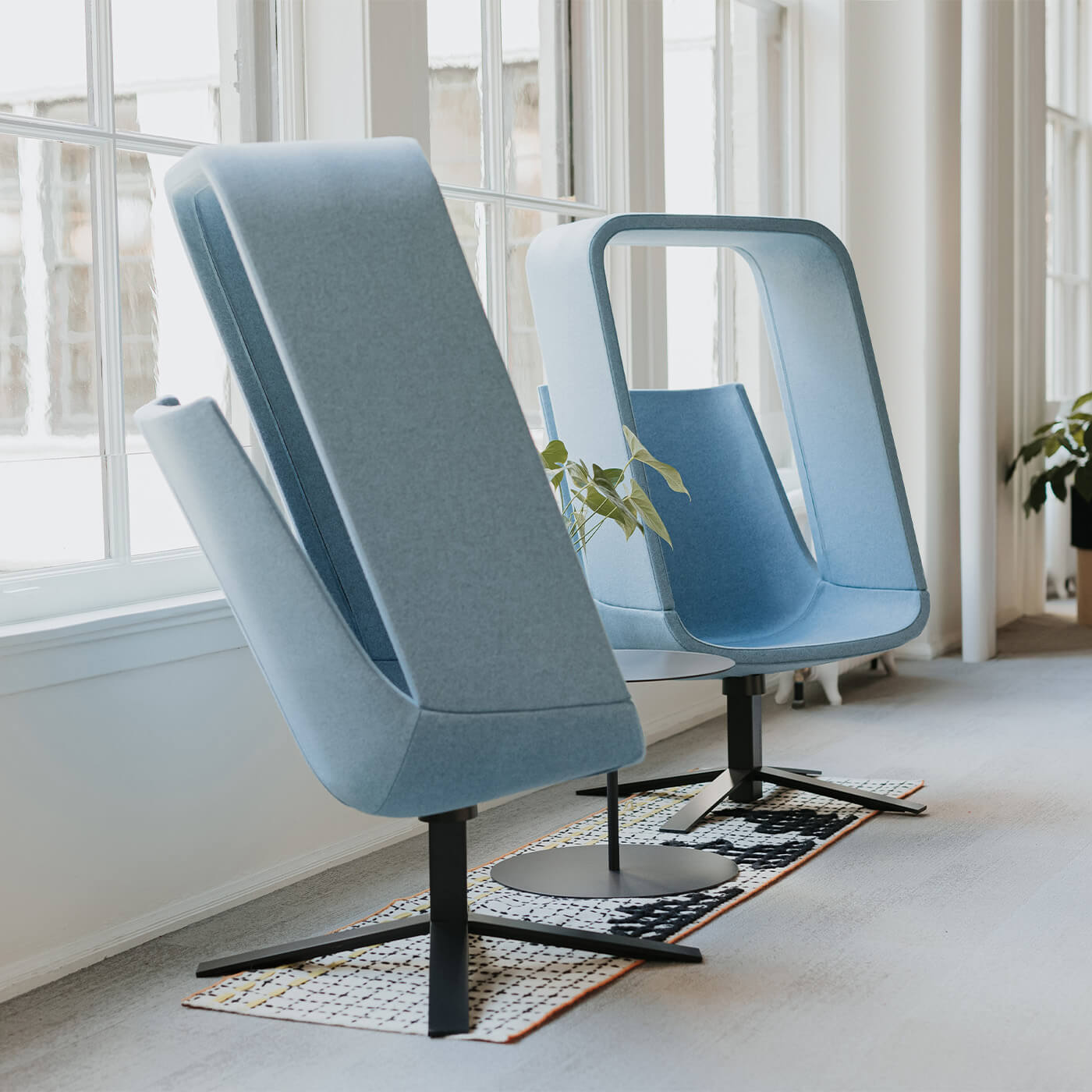 The dynamic Windowseat chair by San Francisco design team Mike & Maaike offers visual privacy in the busiest environments. A lounge, lounge with canopy, and ottoman pieces form a set of furniture fit for airports, lobbies, public spaces, and more. Molded foam over steel frame; offered in grade D fabric with matching base color.