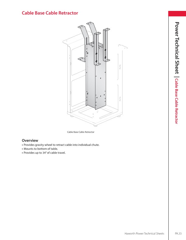 Cable Base Cable Retractor - Haworth Power Technical Sheet