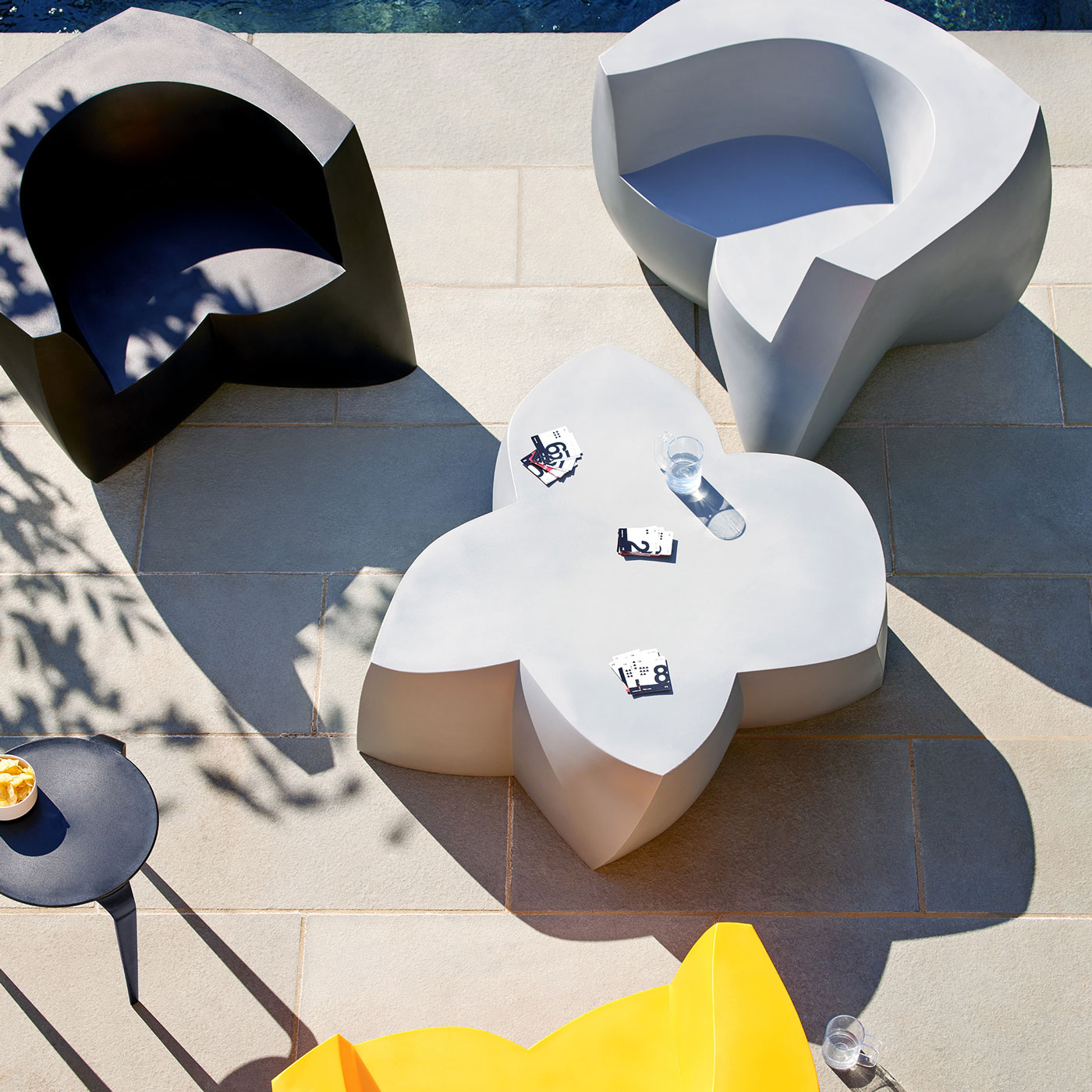 A playful, clover-shaped table for indoor and outdoor spaces