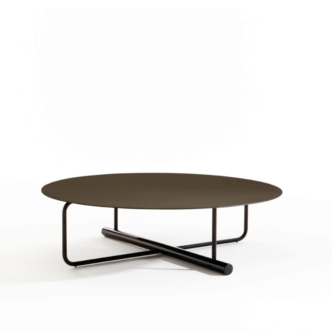 A collection of round coffee tables with playful geometry