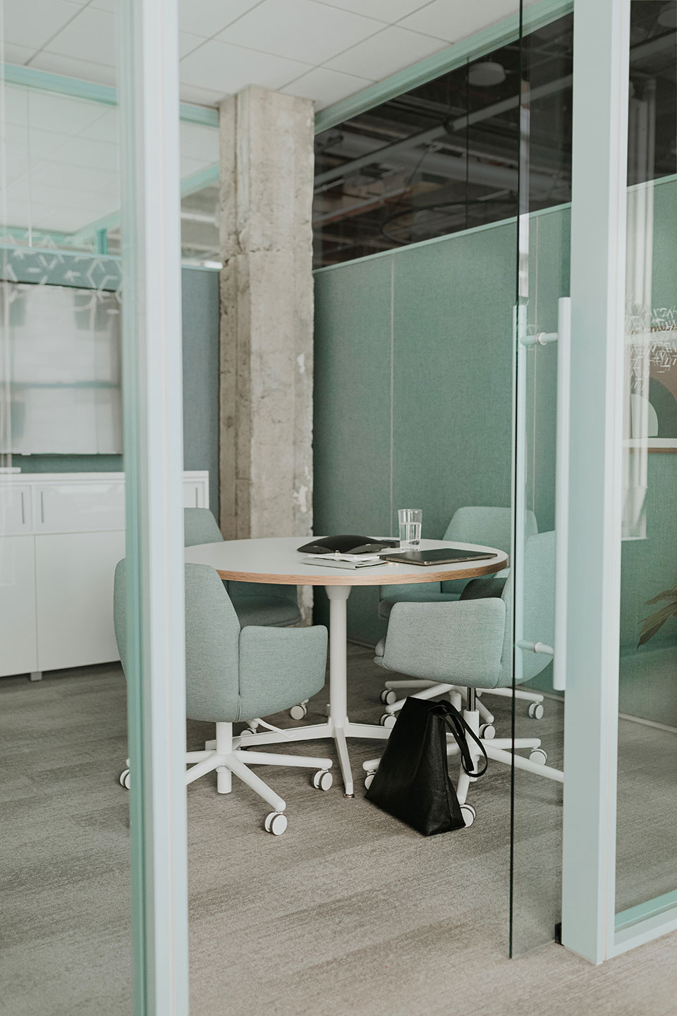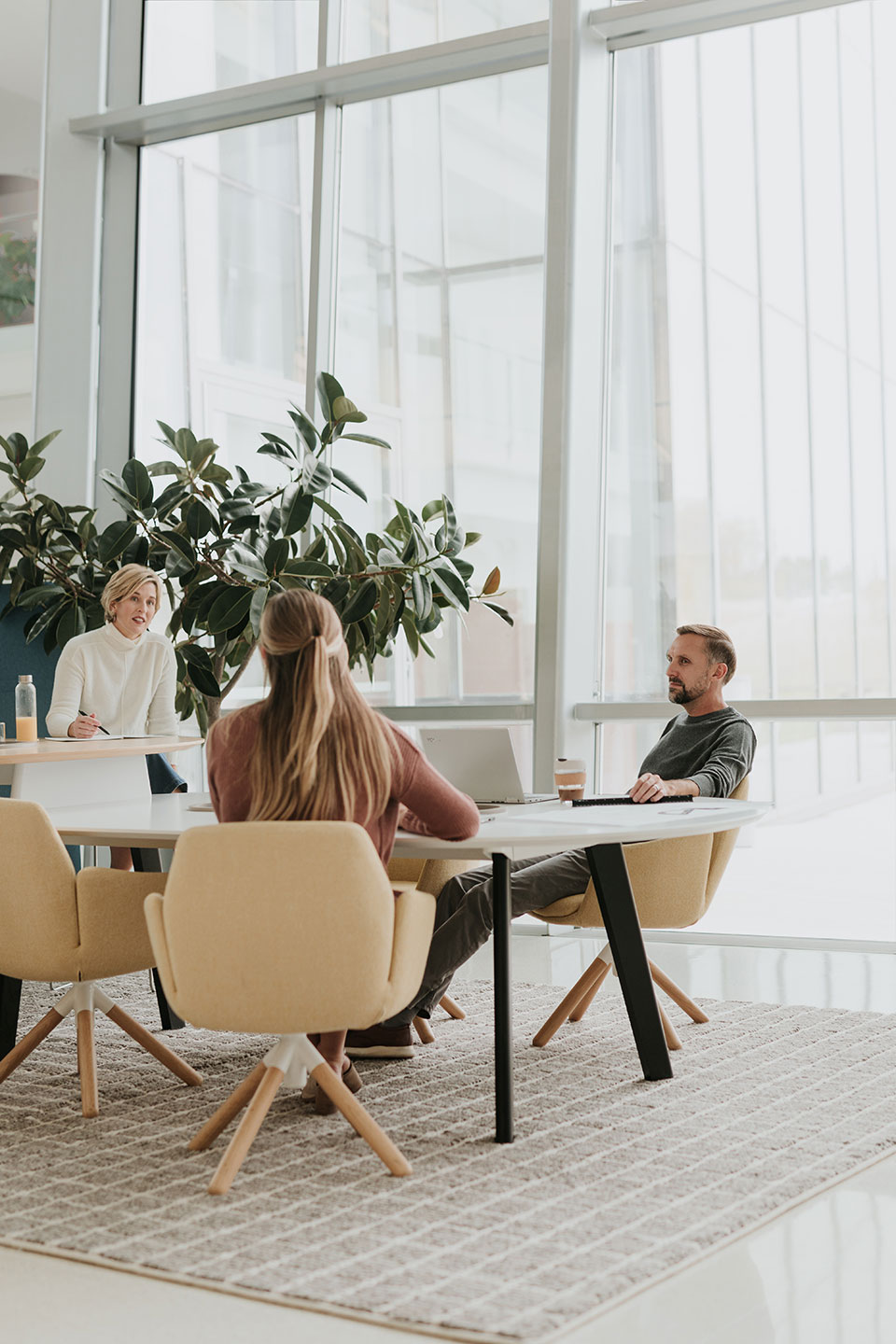 Conference seating with a flexing back and light aesthetic