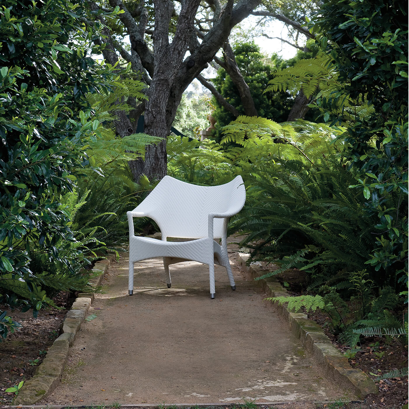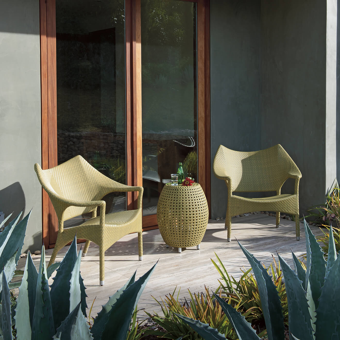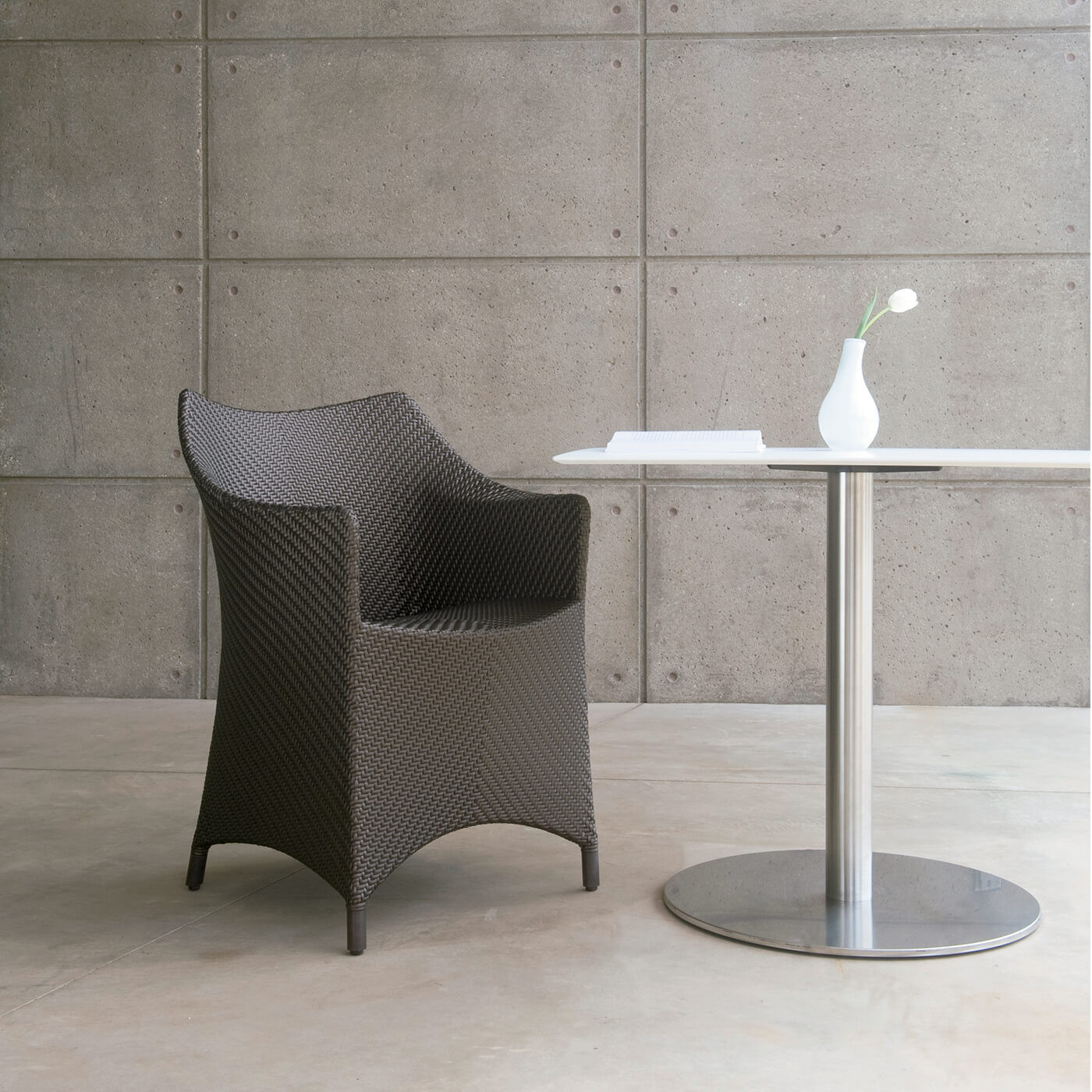 Amari seating combines sweeping curves and strong lines with traditional weaving to furnish refined lounge and collaborative areas. Built with a durable aluminum frame and finished with a meticulously handwoven fiber exterior, each side chair—with or without arms—is a work of art. Available in a sophisticated color palette, the Amari seating family complements Amari tables, indoors and out.