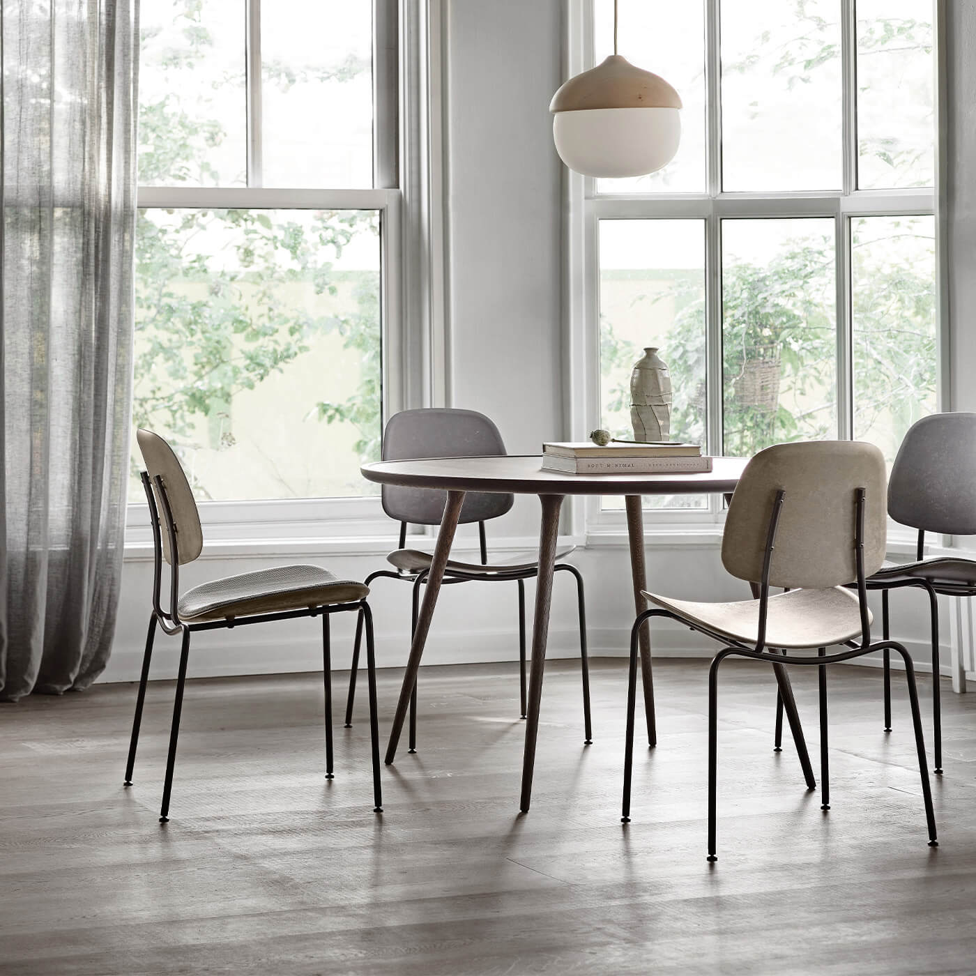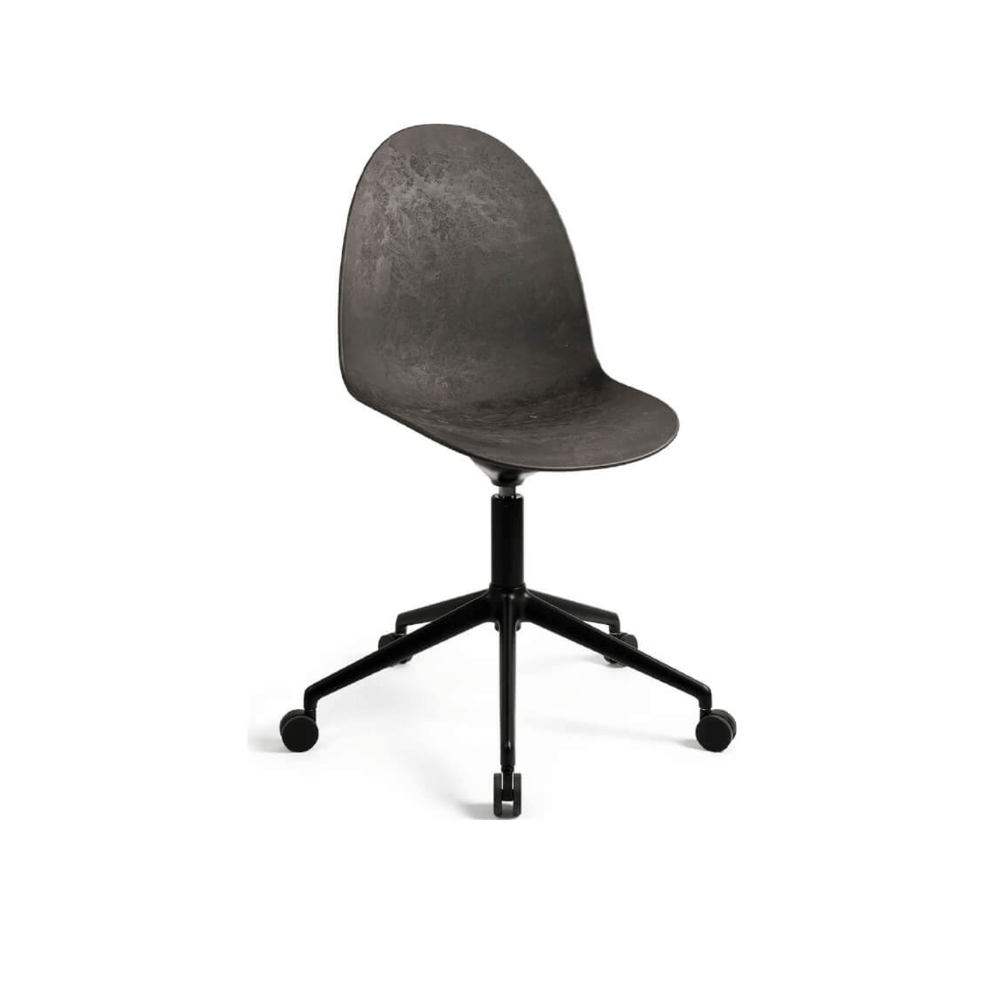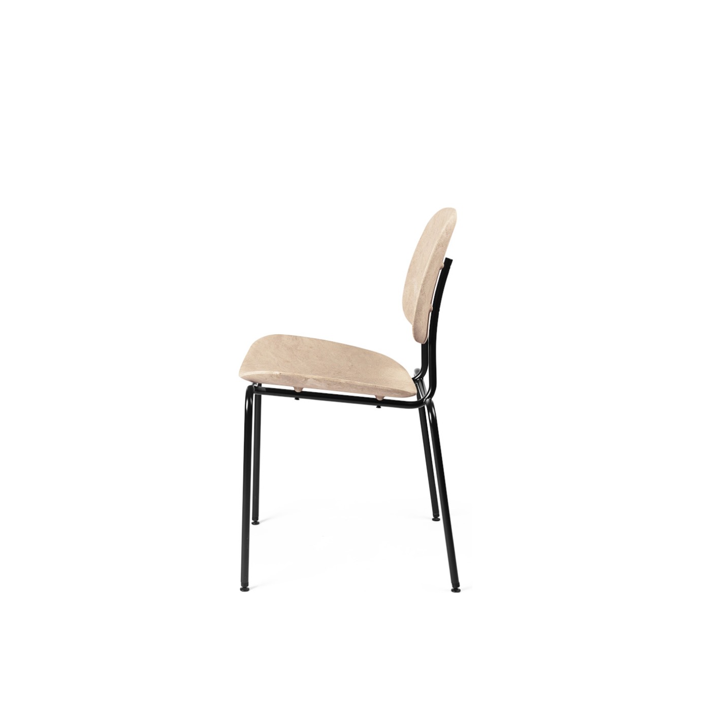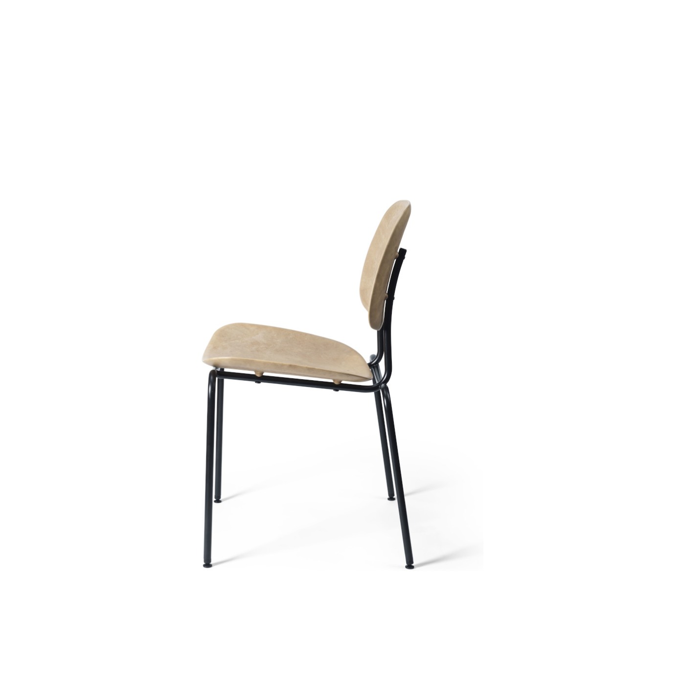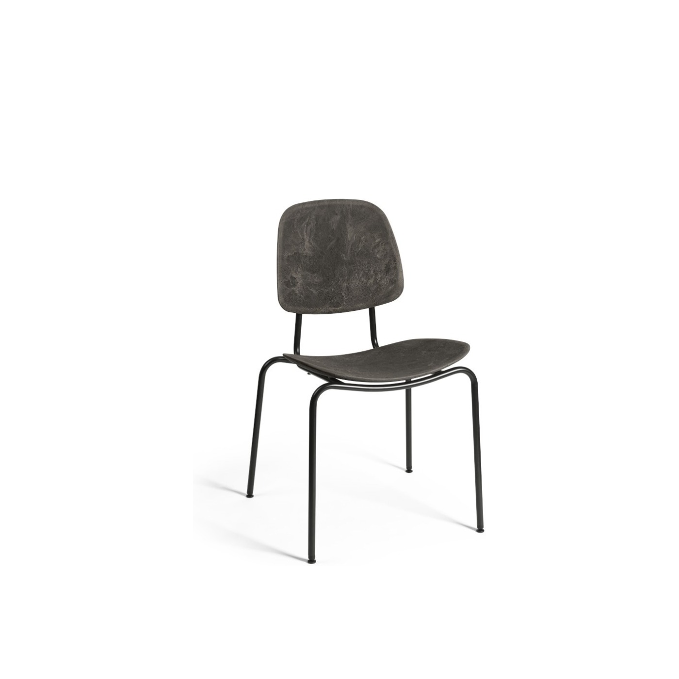 With a partly recycled steel base, this comfortable chair is designed with a seat and back made from Matek®. Created by Mater, this innovative material combines fiber-based waste materials with recycled plastic waste to create a contoured profile.