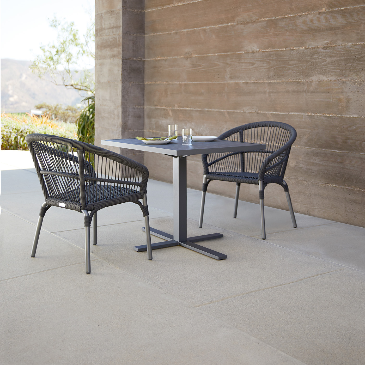 Inspired by the lacing of traditional drums, the Nexus side chair has a signature woven back and rounded silhouette. Comfortable, strong, and lightweight, Nexus seating includes chairs, stools, and sofas. Designed for indoor and outdoor spaces, they’re made with weather-resistant materials.