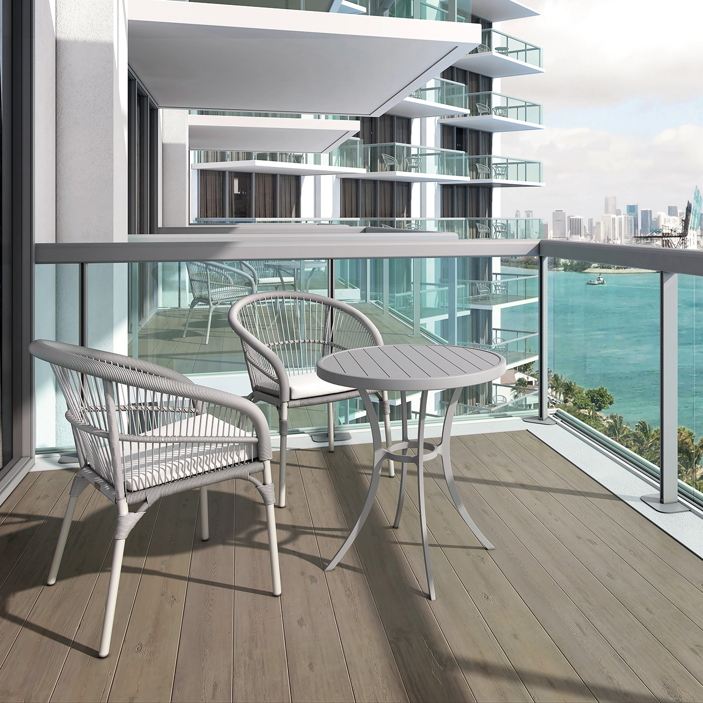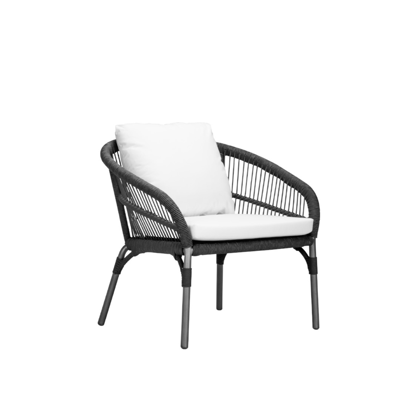 • Rope seat and back made of polypropylene woven fiber wrapped around a polyethylene core, specifically treated for UV resistance