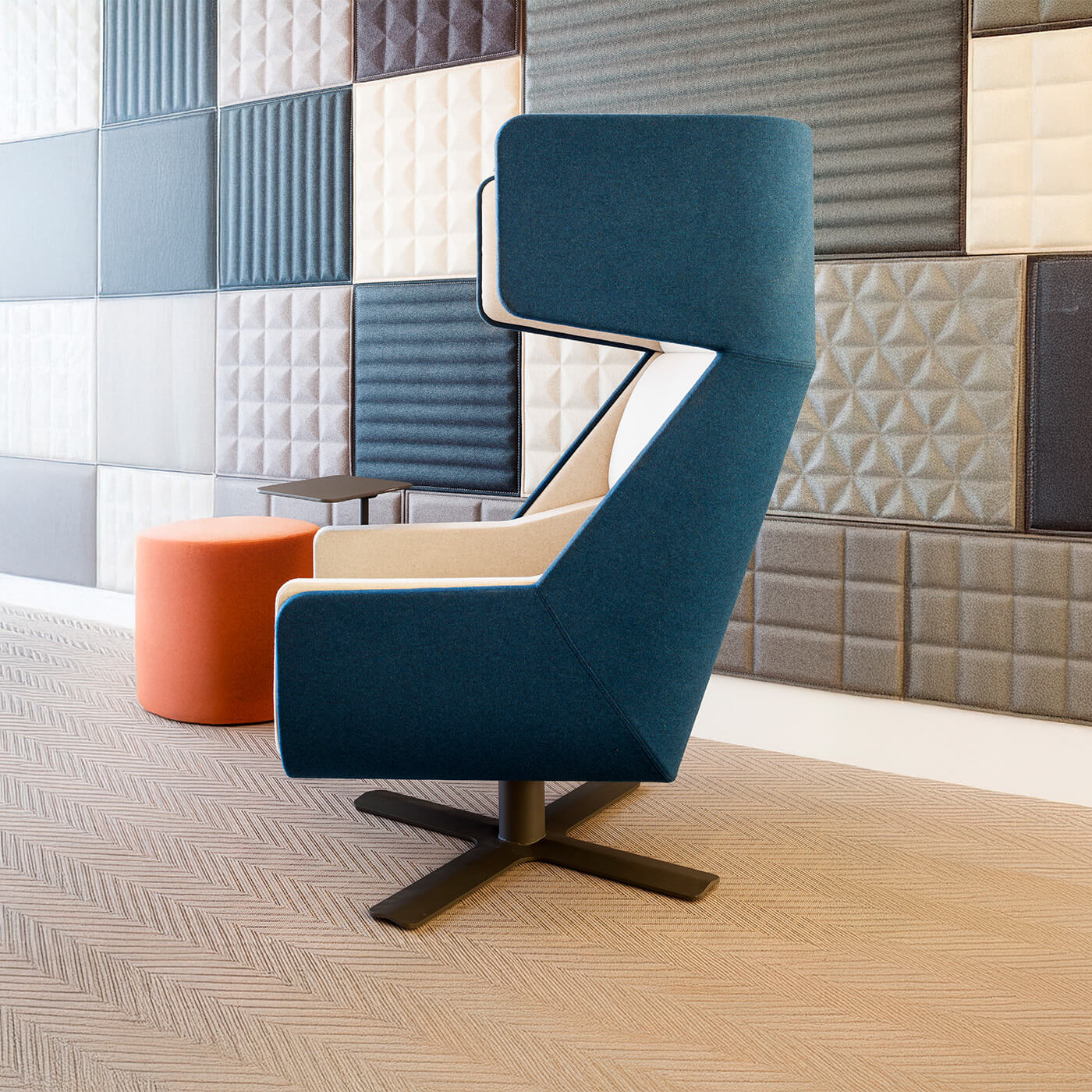 A cocoon-like lounge chair that dampens external noise