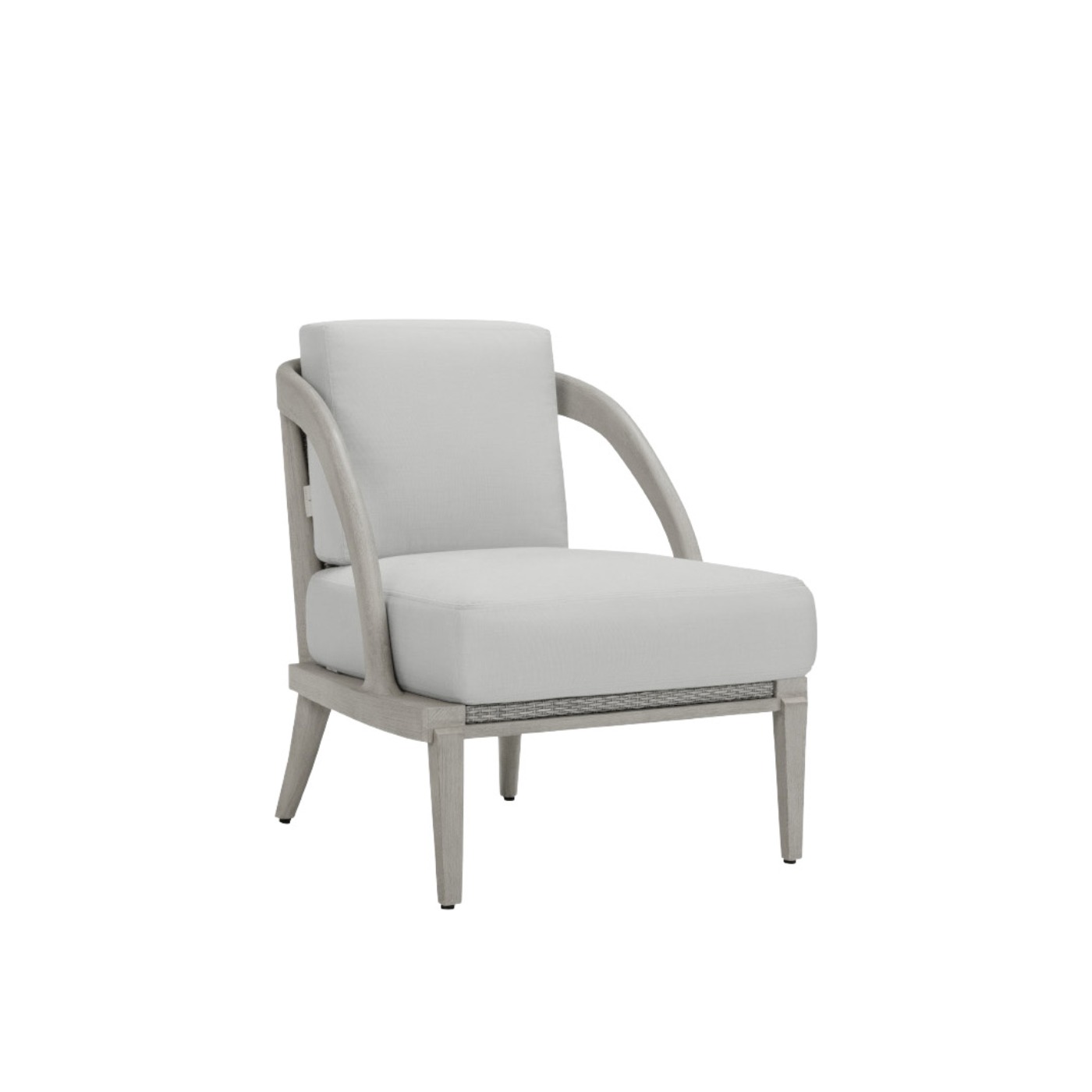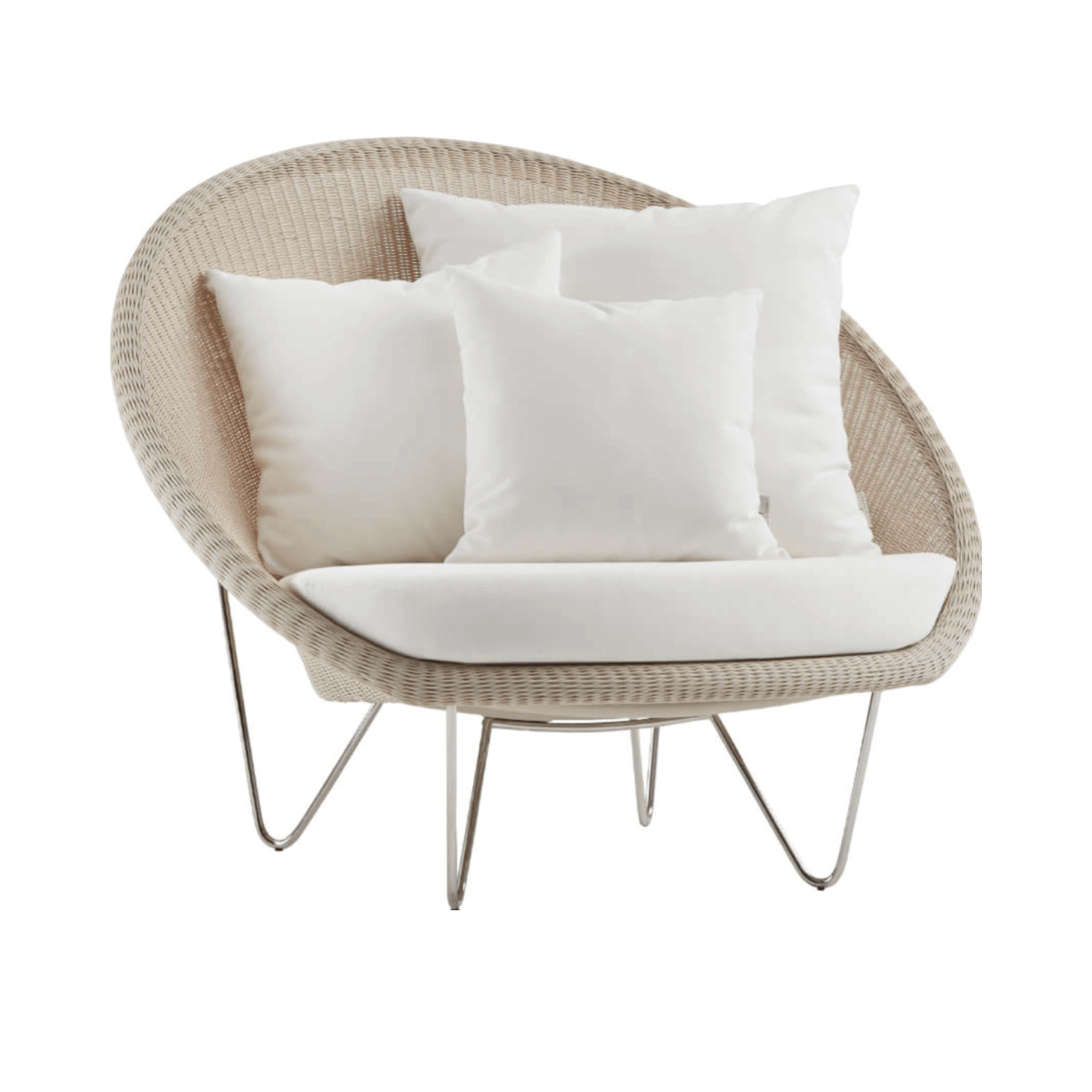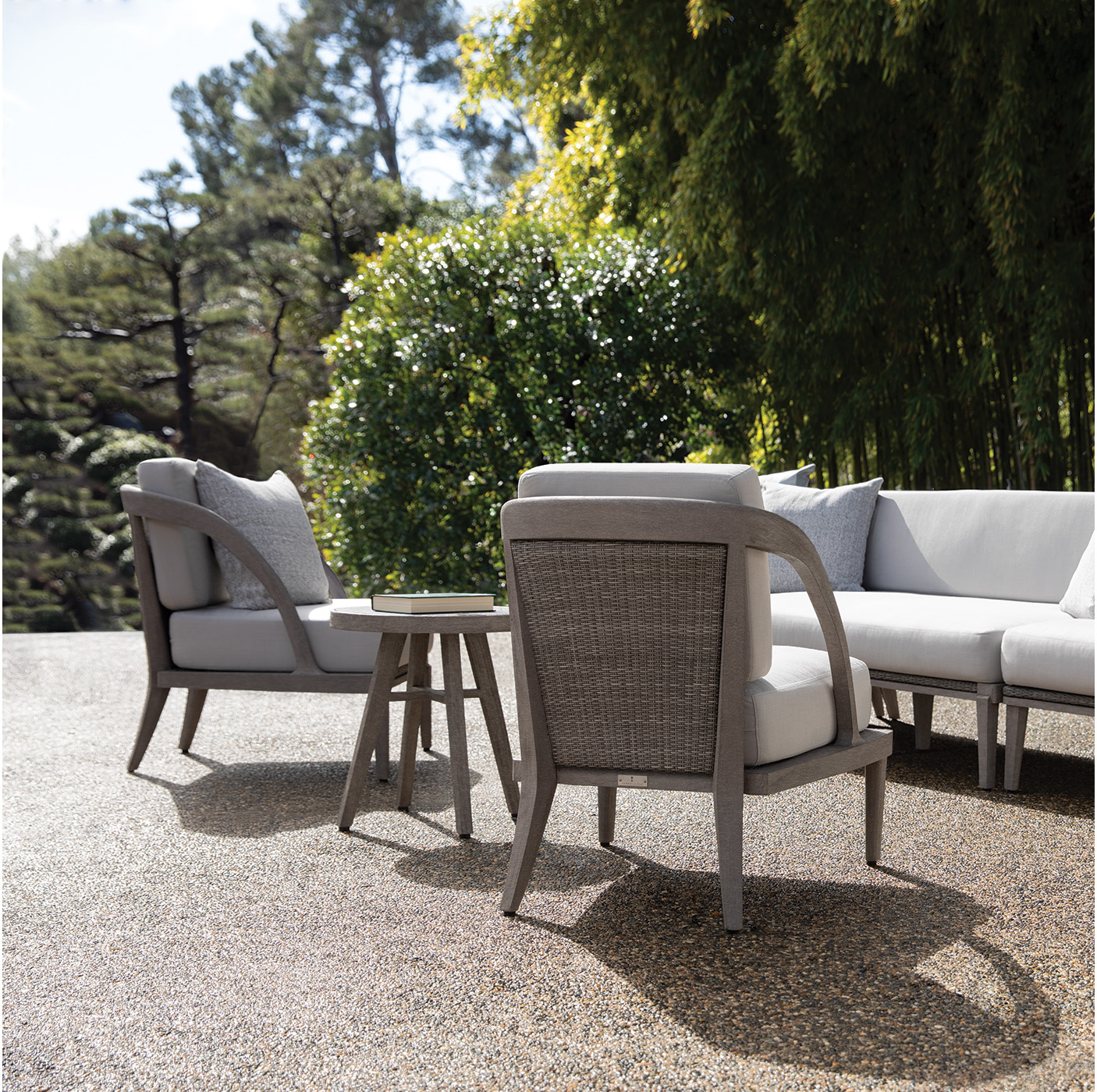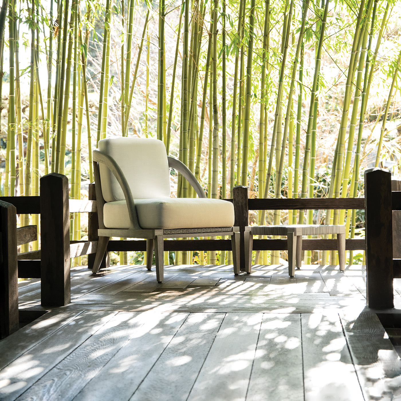 Rock Garden seating and tables offer eye-catching refinement for a variety of settings, both indoors and outdoors. The Rock Garden lounge chair features thick, generous cushions that work in harmony with its driftwood-painted teak frame and handwoven seat and back. Made of richly textured, weather-resistant materials, the chair is durable and comfortable.