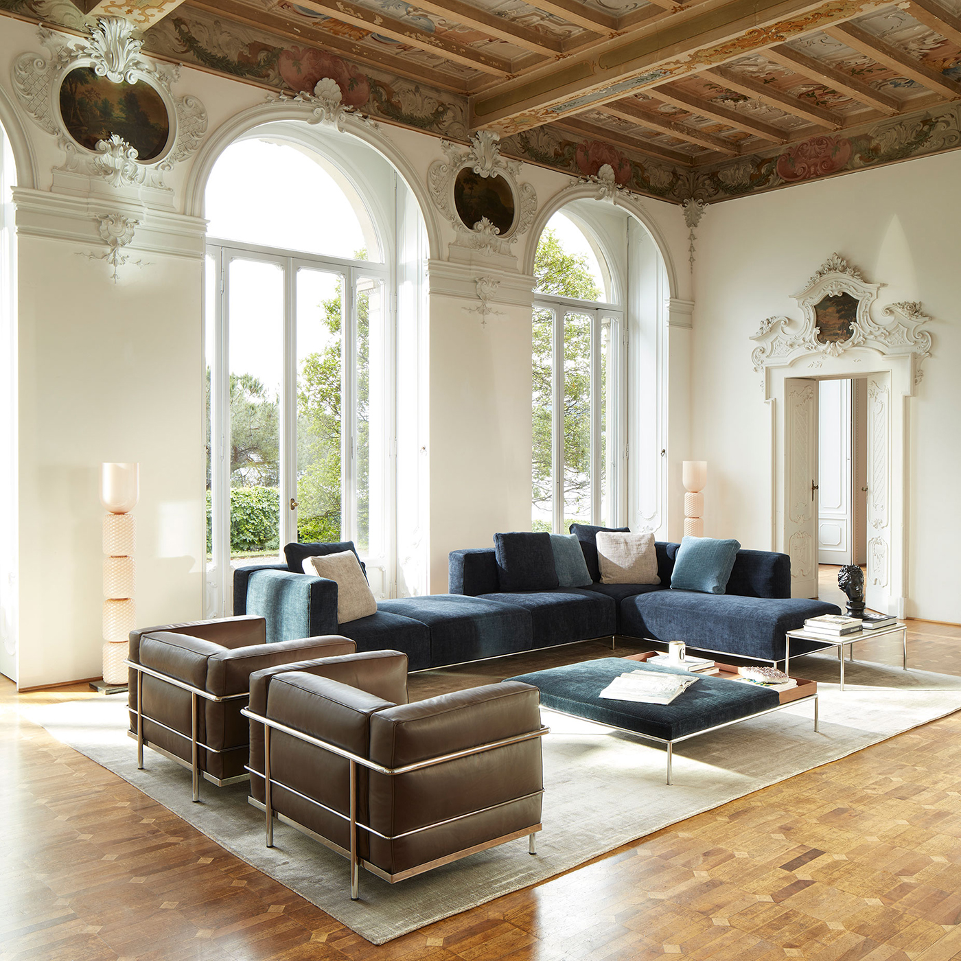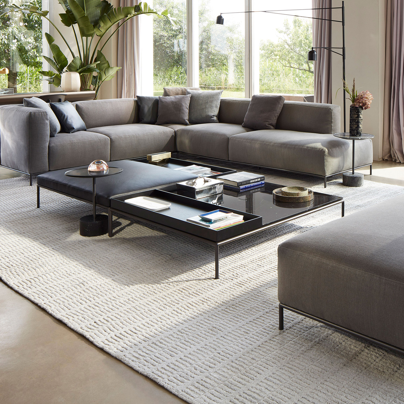 A freestanding ottoman that pairs with the Mex-Hi modular sofa