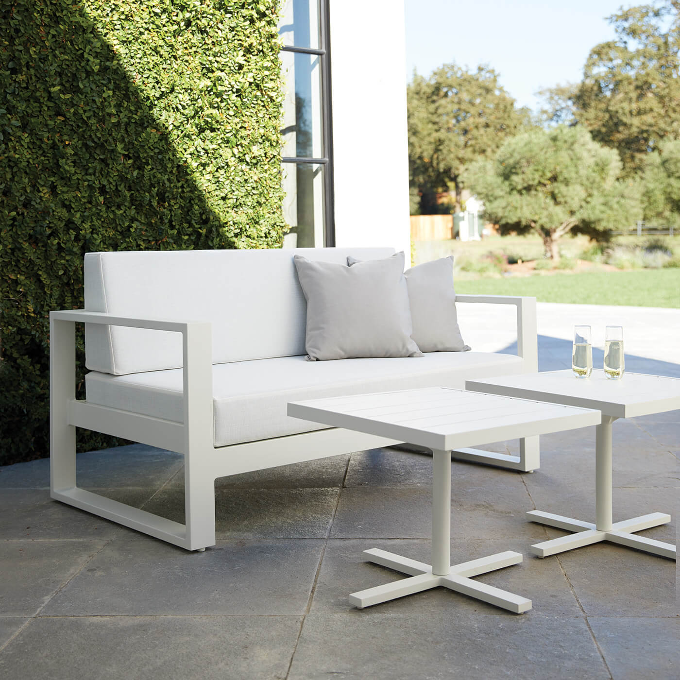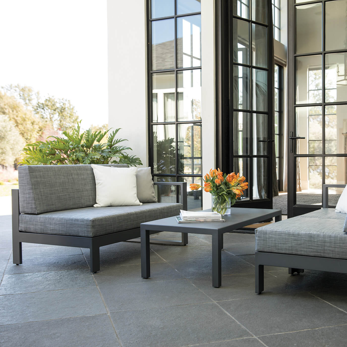 A minimalistic, geometric sofa system for indoor and outdoor spaces