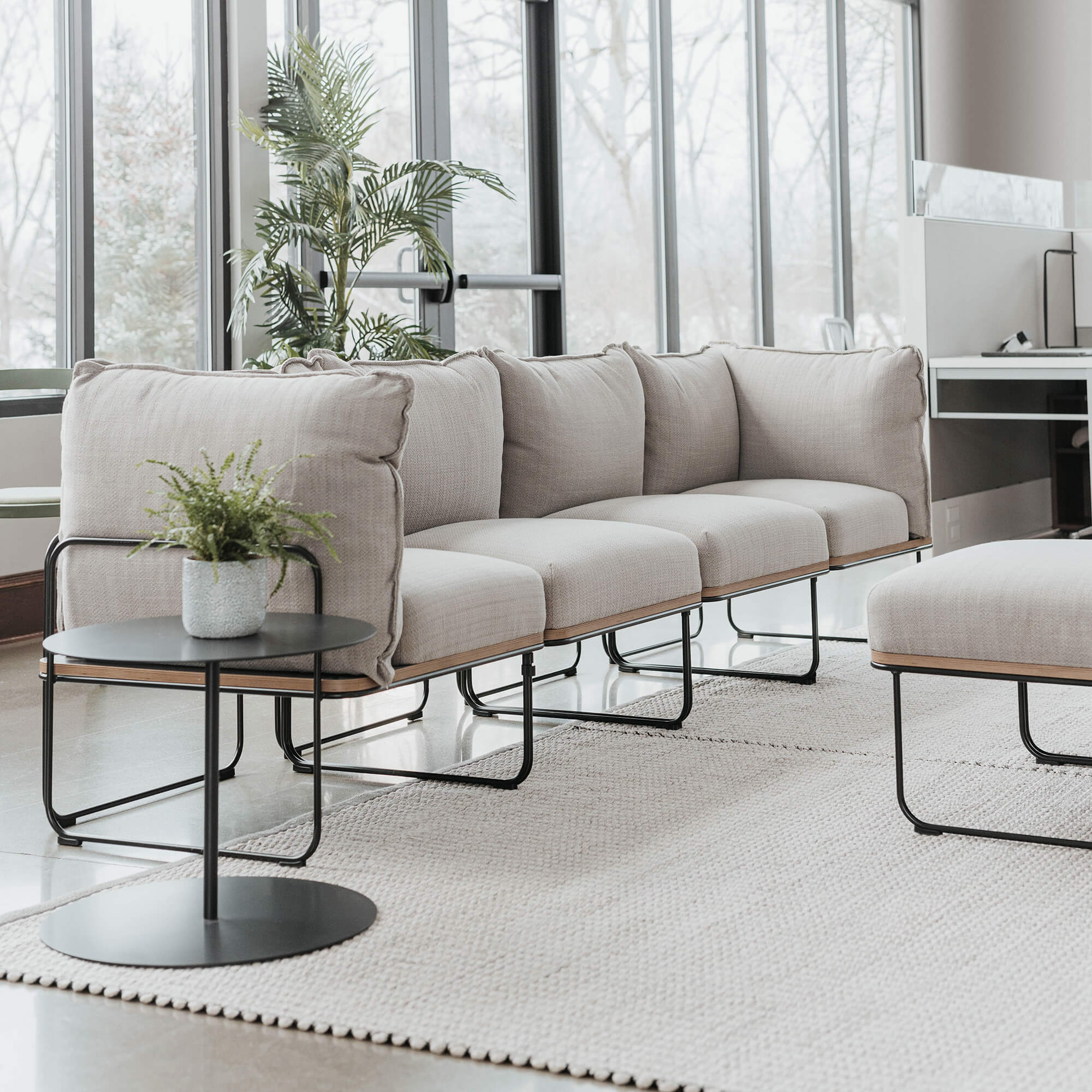 Contemporary lounge seating in a scalable, uniform structure