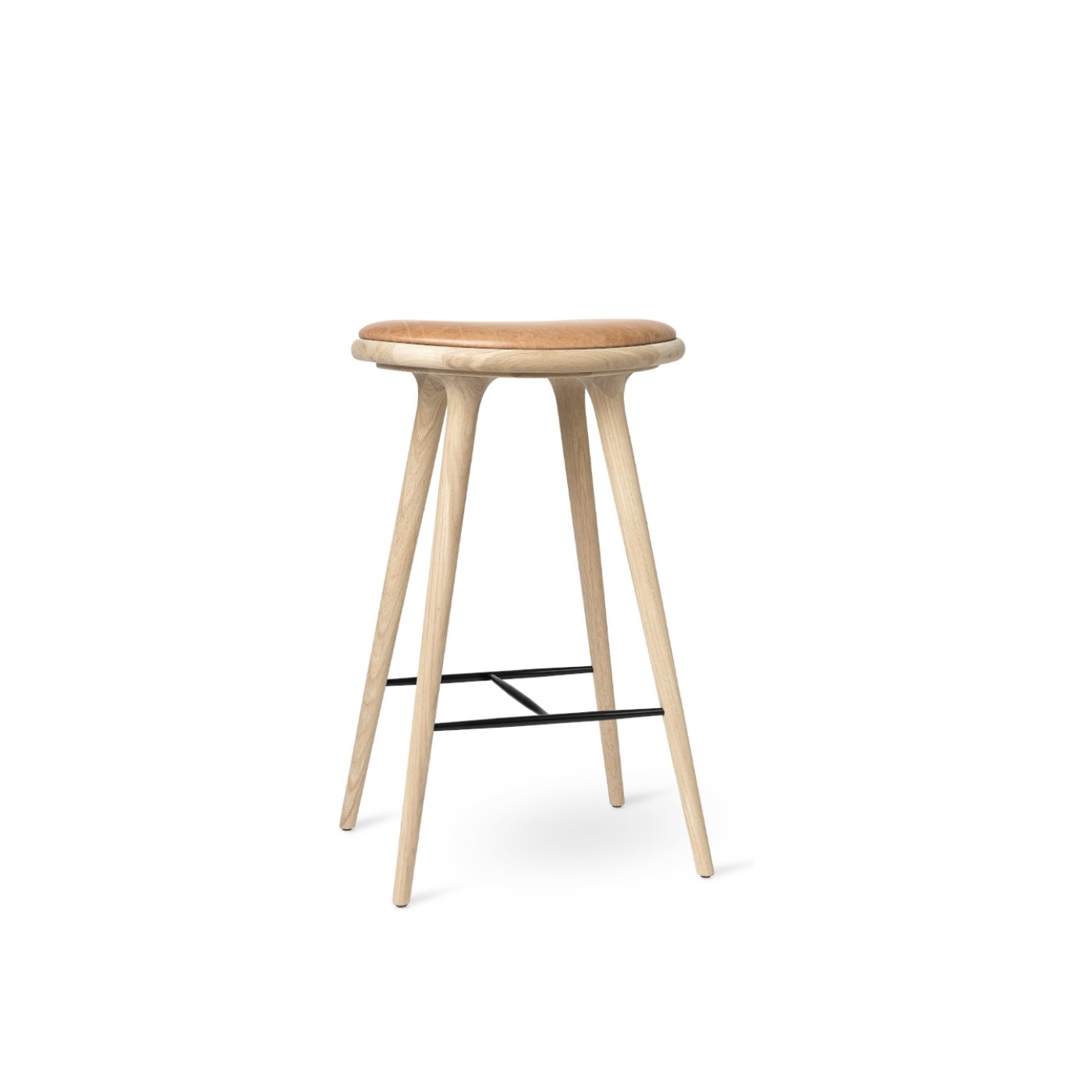 A sustainably made stool with a leather-cushioned seat