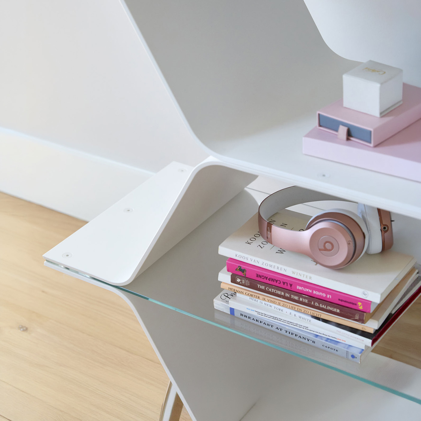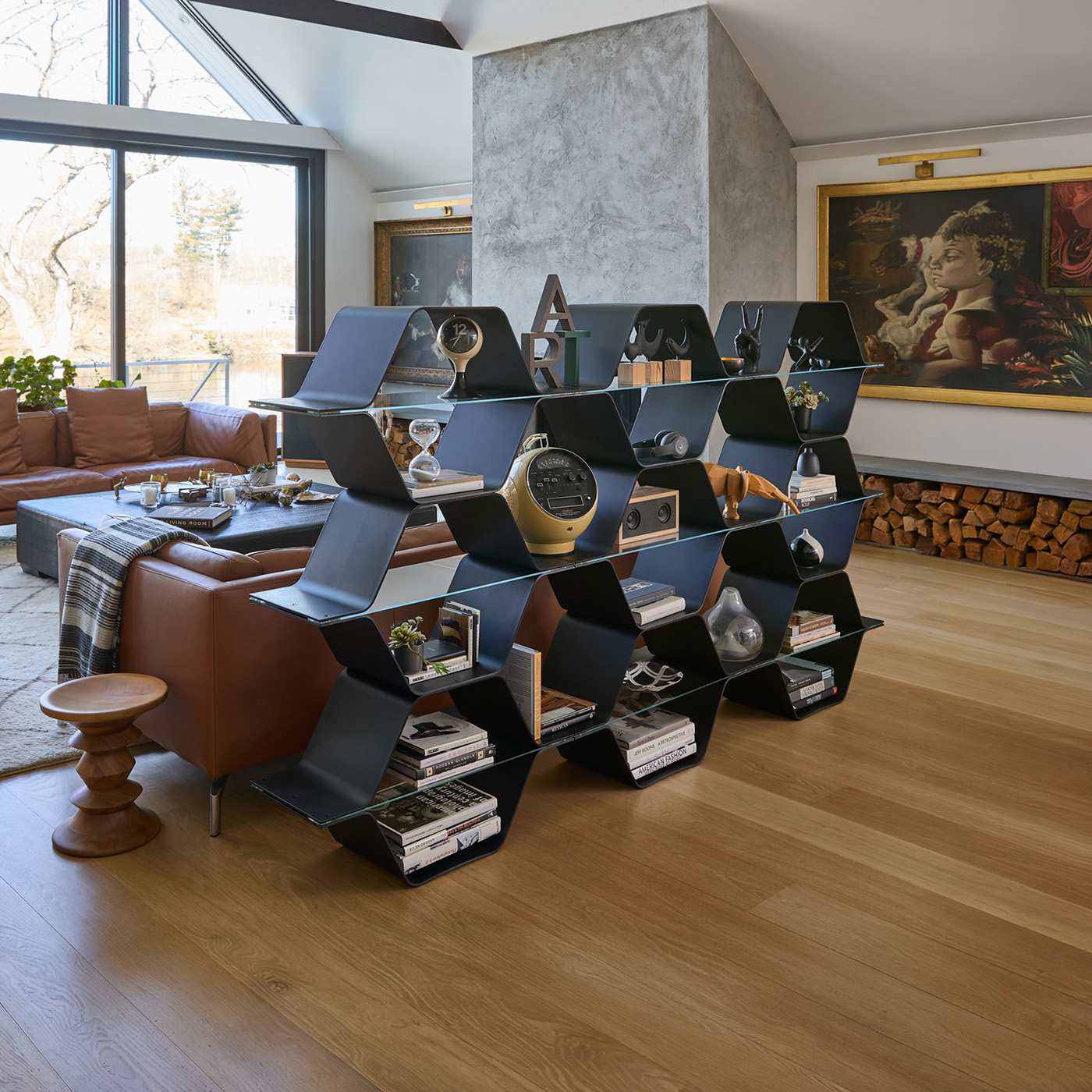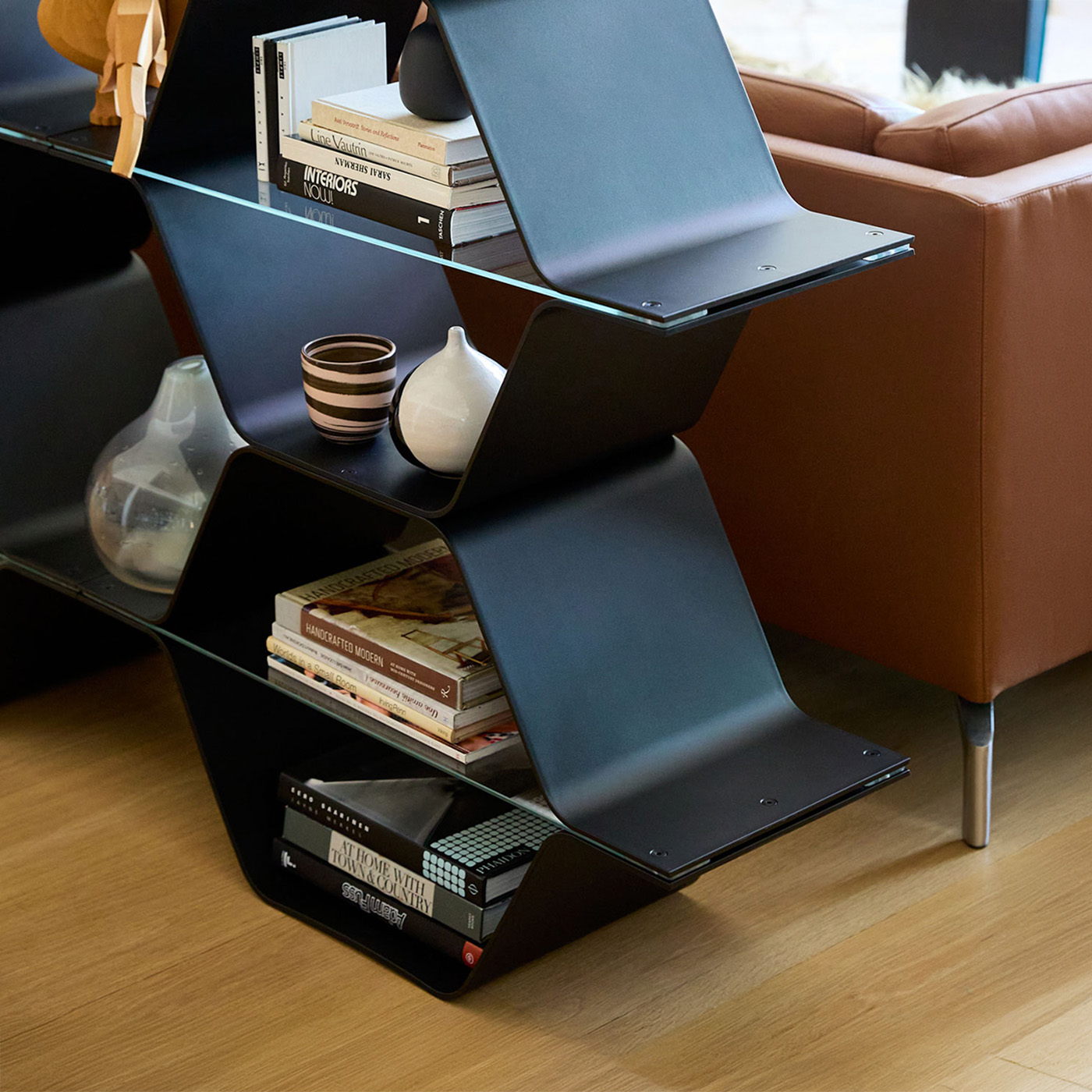 Originally created in 1970, Bill Curry’s honeycomb design returns, reimagined as a modular system made from sustainable plastic. Add cells and create configurations to suit the needs of your space. Store items or display décor on its tempered glass shelves. With a unique, Space Age design, Honeycomb is a distinctive presence.